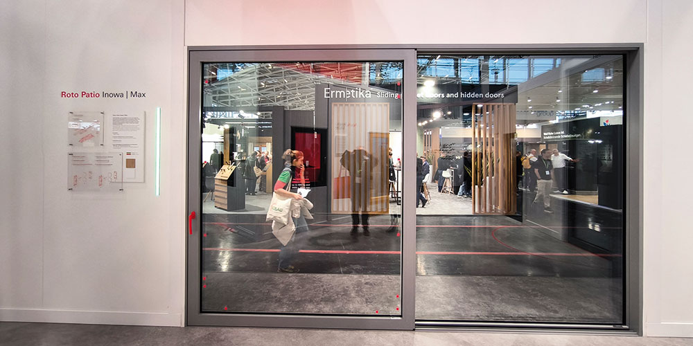 Au salon BAU, Roto Technologie pour fenêtres et portes utilisait à nouveau son concept RotoCity, développé pendant le Covid. Tous les produits présentés à BAU étaient en même temps intégrés dans la ville virtuelle RotoCity. Roto Patio Lift | Slim, le hardware pour levant-coulissant avec des profilés très très étroits était ainsi à la fois mis en scène virtuellement et exposé réellement dans un format de 4000 x 2548 mm, avec des poids de vantail allant de 150 à 400 kg. Cette ferrure peut aussi être utilisée pour les profilés en PVC et offre en option une protection anti-effraction conformément à la norme RC 2.