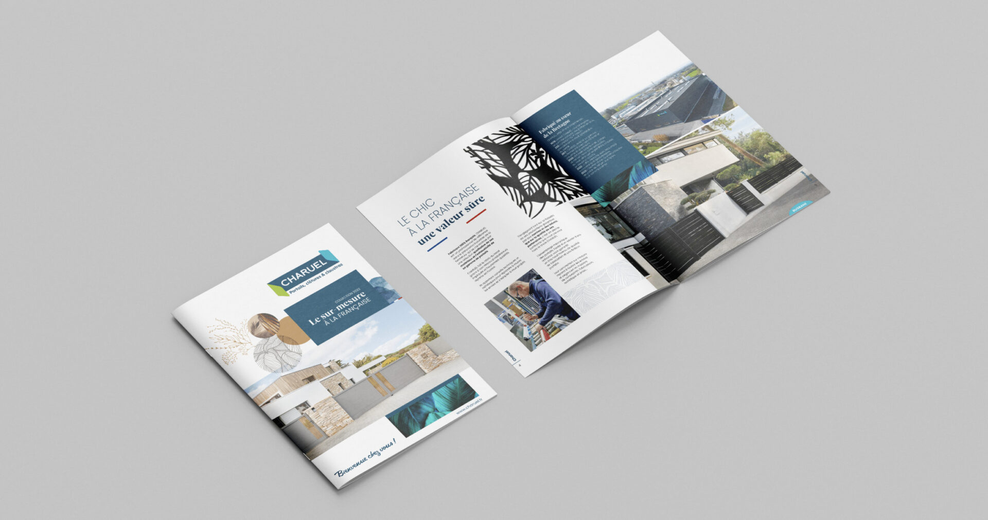 Séance relooking pour l’édition du catalogue « Collection 2023 » de CHARUEL ! Tout en élégance avec ses mariages de blanc, de doré, de minéral et de végétal, la couverture met à l’affiche « Le sur-mesure à la française ». Un titre qui caractérise l’ADN de ce réseau qui prône historiquement une fabrication locale et une personnalisation totale selon les envies du client, l’architecture de l’existant et les spécificités techniques du chantier.