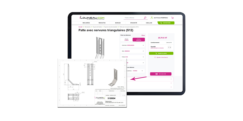 En plus du texte descriptif des produits, des schémas et des vidéos de mise en œuvre, LOUINEAU a intégré le téléchargement des plans côtés des pièces.