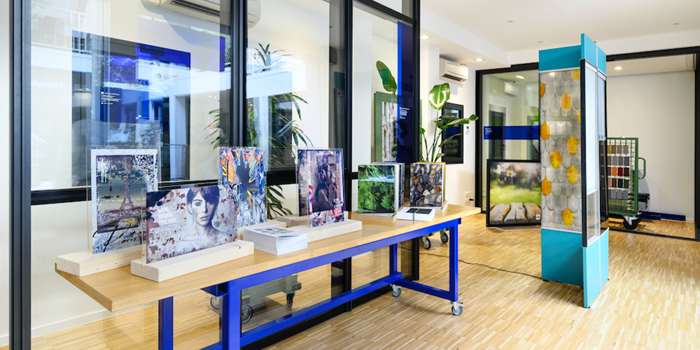 Le lieu d’exposition va ainsi permettre de présenter tout le savoir-faire de RIOU Glass et d’organiser des événements thématiques autour des vitrages de la marque. Une expertise qui va des produits les plus innovants, comme le vitrage chauffant, aux produits les plus techniques (pare-balles, anti-feu…) et élégants. Parmi ces derniers, l’ETI a développé des gammes de vitrages pour l’intérieur de l’habitat. Pour le marché de l’agencement et de la décoration d’intérieur, RIOU Glass s’est associé aux designers Anne et Philippe Sorigué qui ont dessiné et conçu deux gammes exclusives de vitrages ultra-design, l’une pour les portes d’entrée et l’autre de crédences de cuisine. RIOU Glass a également fait appel à l’artiste Yann Dehais qui a imaginé une collection d’œuvres sur verre : une vingtaine de tableaux disponibles à la vente sur le eShop du verrier qui mêle plusieurs influences comme le sport, la pop culture, les voyages ou encore l’automobile.