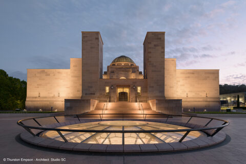 Silhouette de cuivre vert de style byzantin, reconnaissable entre toutes, le dôme de l’Australian War Memorial impose sa monumentale présence sur un site de 14 hectares déroulant cinq bâtiments et un jardin accueillant différentes sculptures. Édifié en 1919 en commémoration des morts et blessés de guerre, ce mémorial emblématique a ouvert ses portes au public en 1941 jusqu’au musée délivrant aujourd’hui la nécessaire pédagogie des conséquences de la guerre. Depuis plusieurs années, l’édifice connaît d’importants travaux de rénovation qui devraient s’étendre jusqu’en 2028, dont la dernière transformation en date est sans conteste le spectaculaire Oculus, verrière -géode du nouveau hall d’entrée, inaugurée le 3 février 2025.