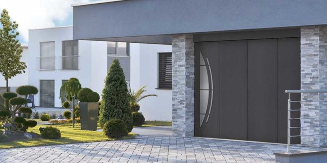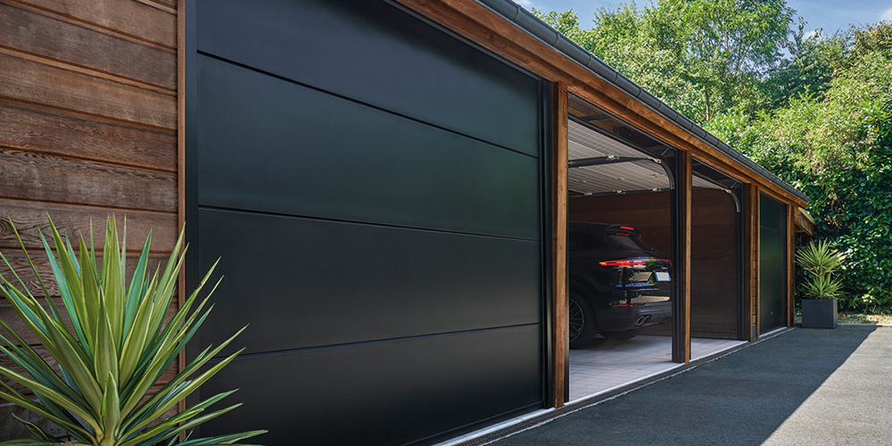 DAKO, marque polonaise de menuiseries, présente la porte de garage sectionnelle DK-NGP pour un extérieur design et minim...