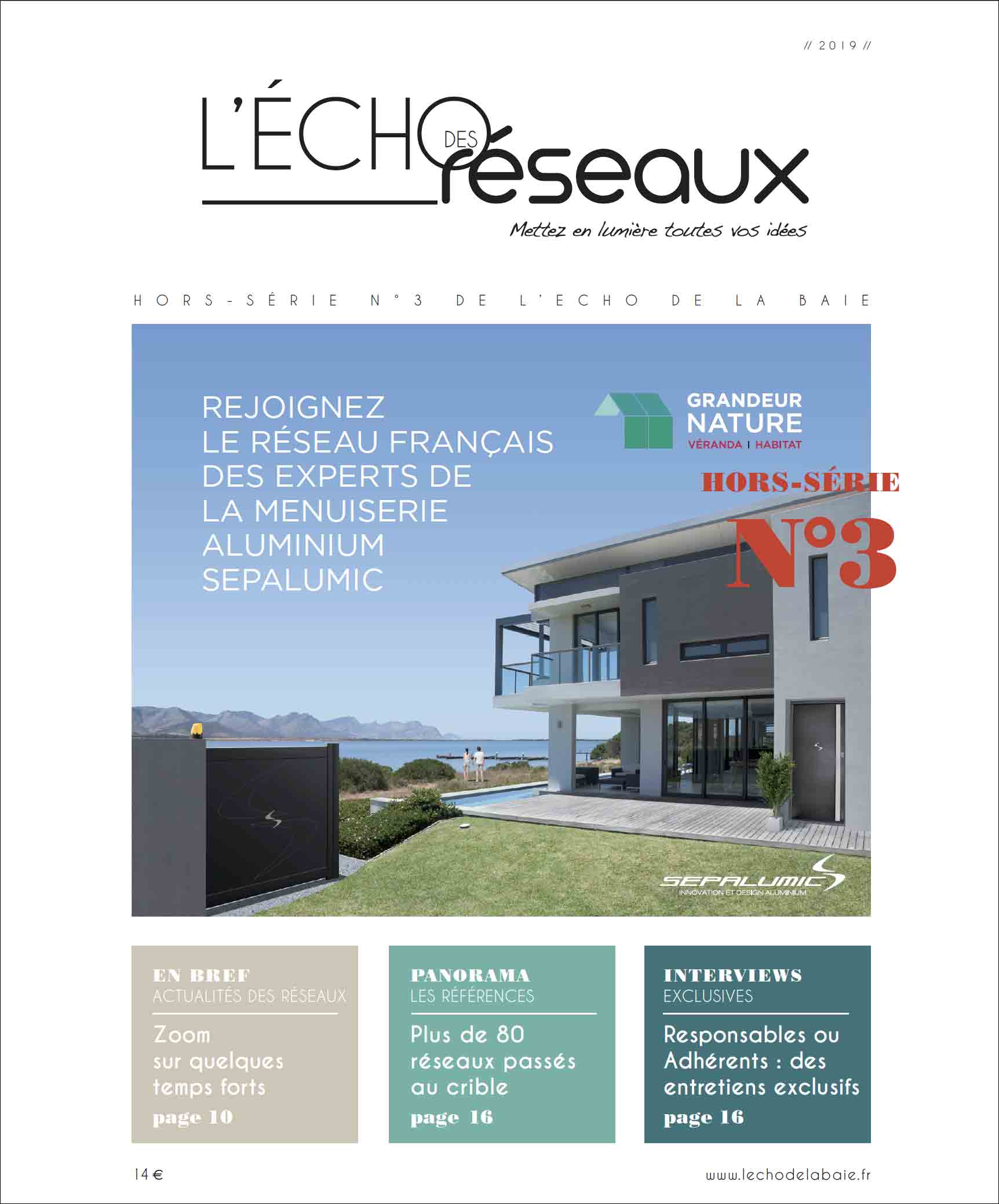 en la matière. Petit, pratique, unique, L’Echo des Réseaux, hors série du magazine L’Echo de la Baie, répertorie pas moins de 67 réseaux représentatifs de notre secteur de prédilection : la Baie. Menuiserie, véranda, domotique, protection solaire, portails, tout notre univers est ici représenté soit par des réseaux d’indépendants, des réseaux de fabricants, des franchisés, des groupements, des partenaires, des concessionnaires. Car, tout le monde le sait bien : les réseaux génèrent un formidable partage de compétences et permettent d’assurer croissance et pérennité. Parce qu’ « Ensemble, on est plus fort » il est primordial, voir vital pour les professionnels de s’adosser à une enseigne. La force d’un réseau provient de l’apport de chacun, du respect de son identité et de ses compétences. Des compagnons de route qui